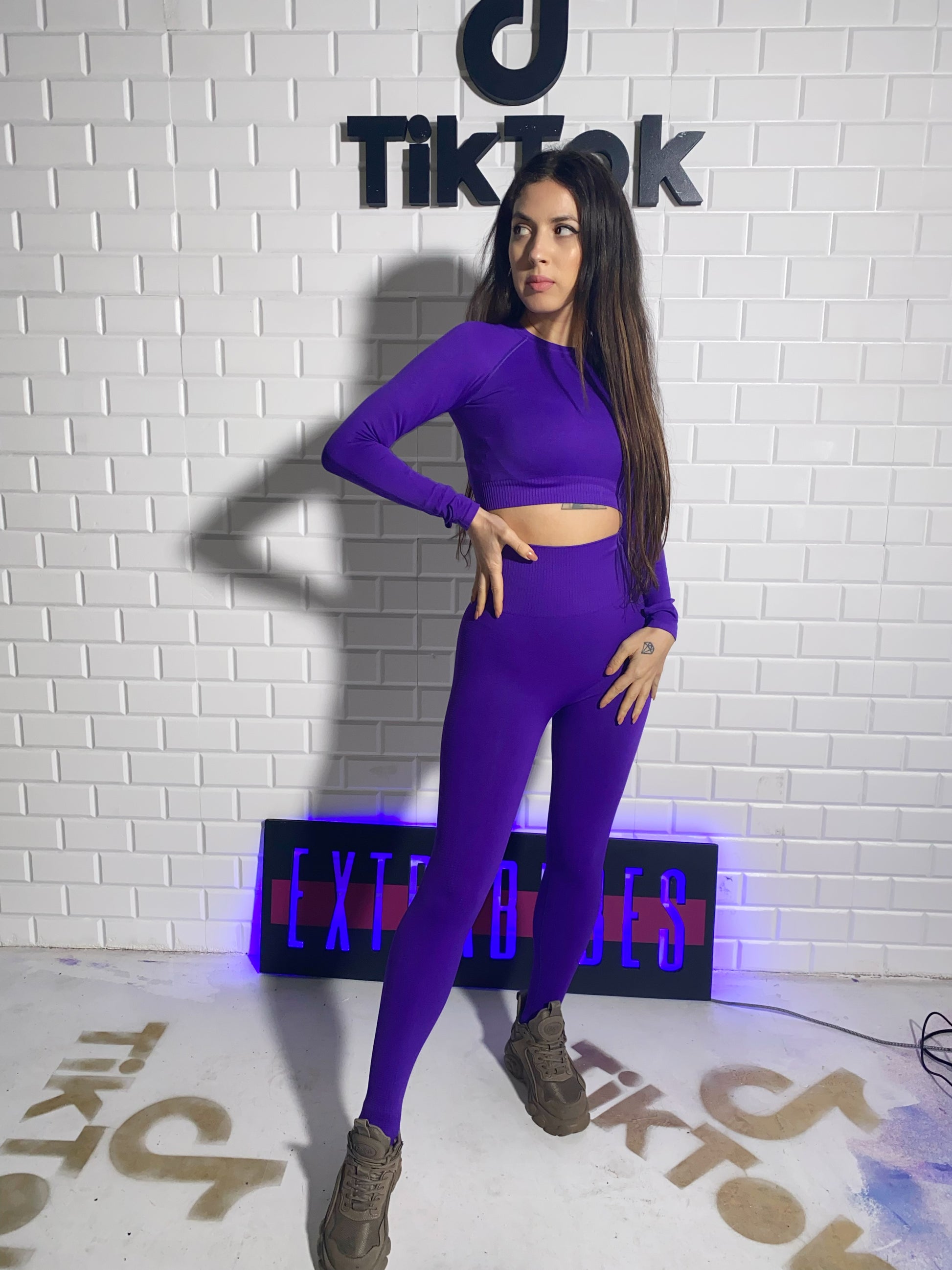 Compleul fitness 'Purple' este perfect pentru toate iubitoarele de sport. Setul fitness poate fi purtat si ca un 'comfy outfit' pentru iesirile de zi cu zi. Acesta iti pune in evidenta silueta, creand un efect slim-fit.