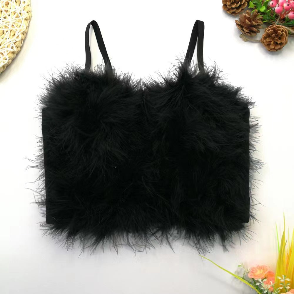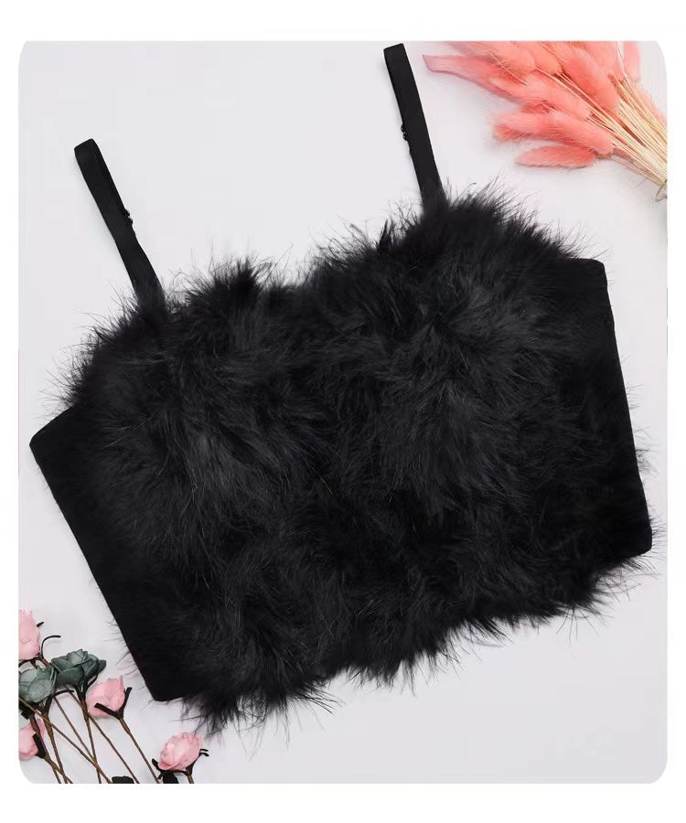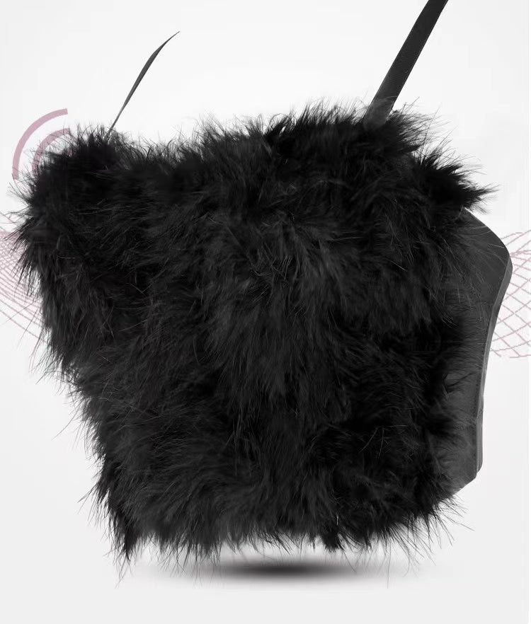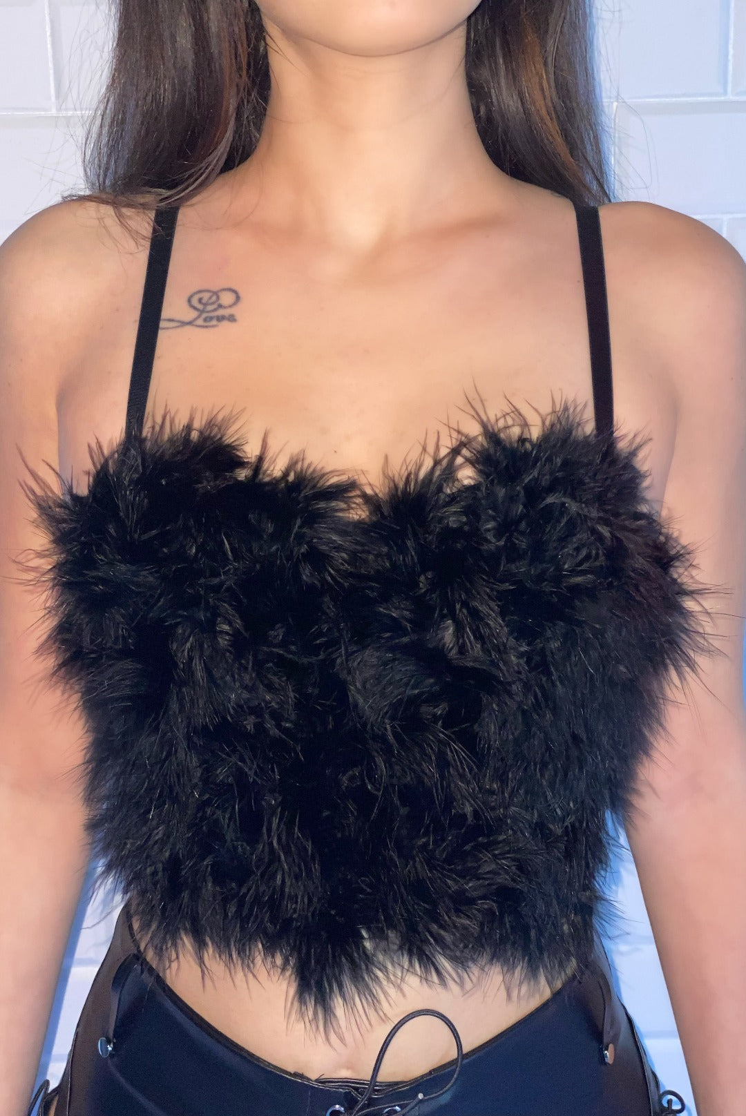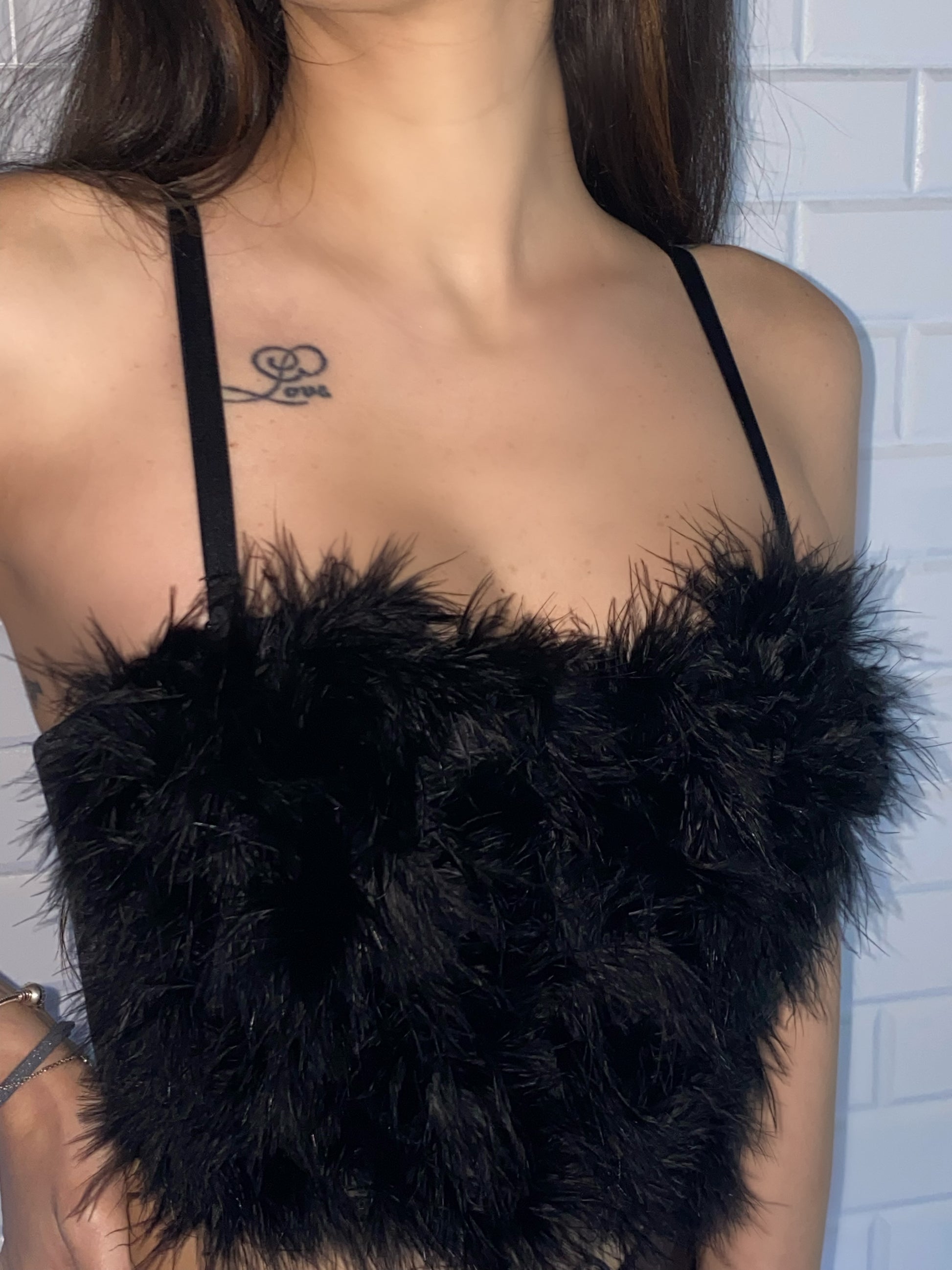 CORSET ‘BLACK FUR’ - Corset top negru cu pene si cupe