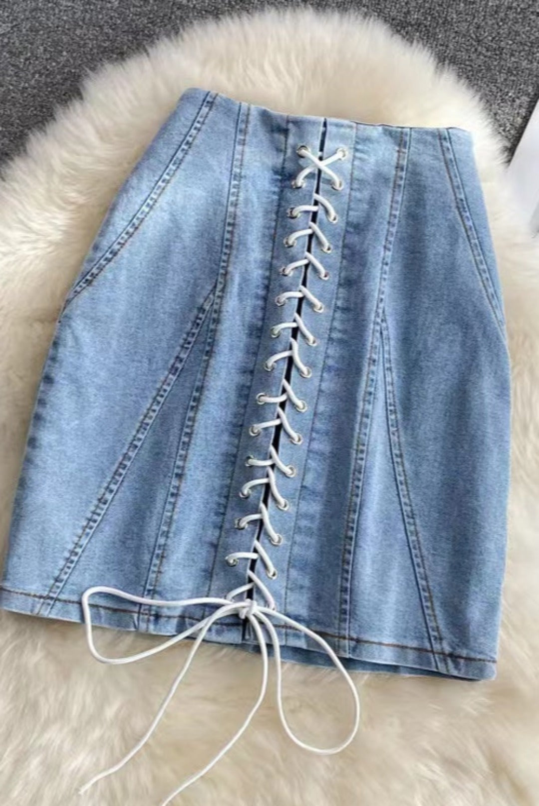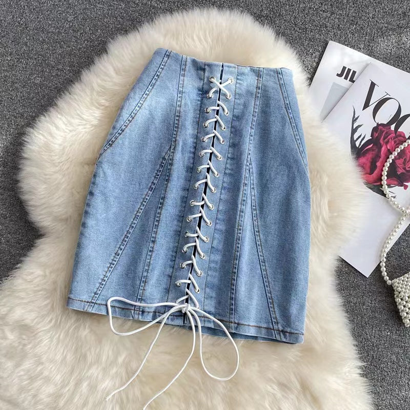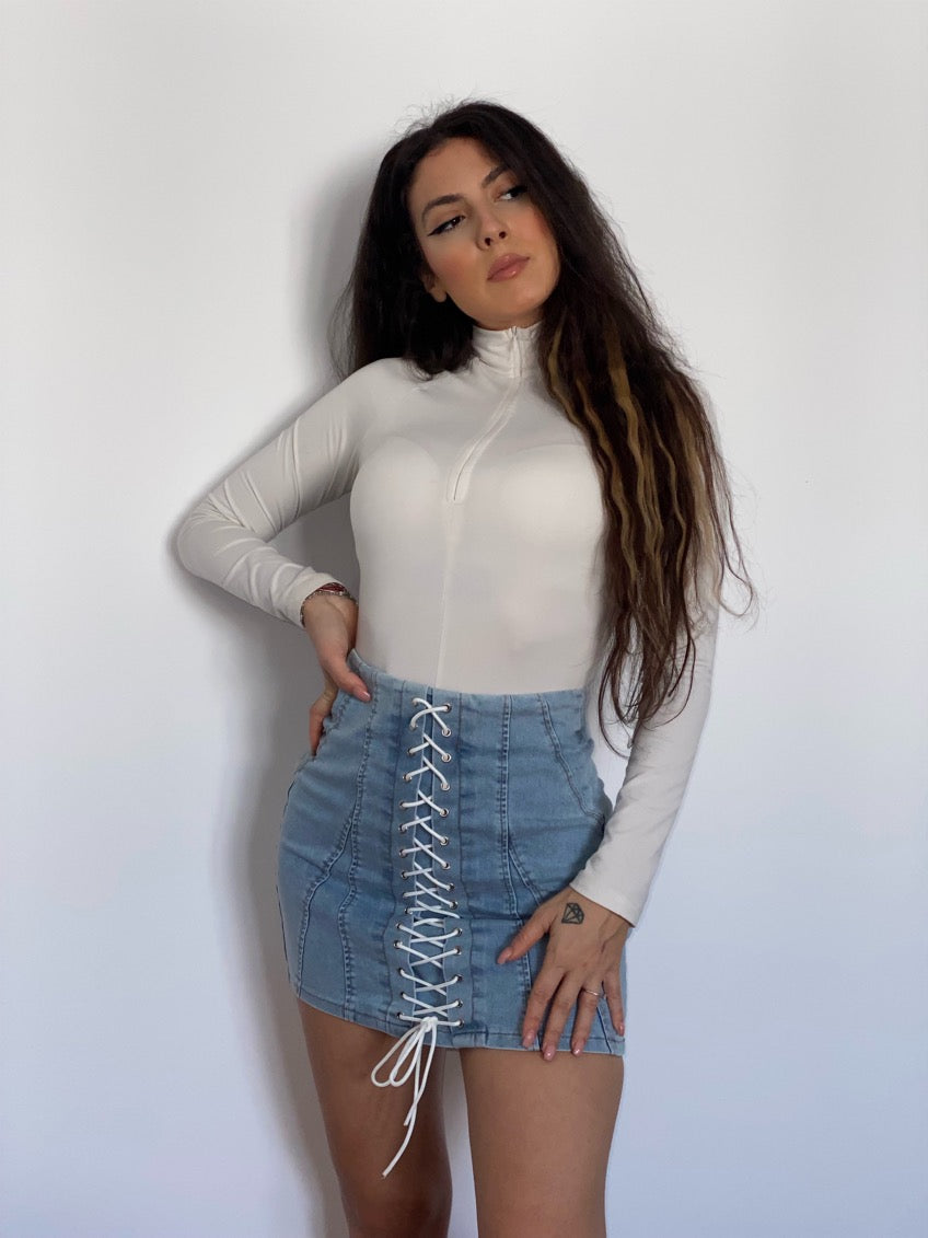 Fusta 'DENIM LACE' din blug si detalii din snur