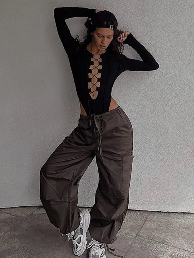 Poarta acest body ce te va scoate in evidenta datorita detaliului cu snururi din zona decolteului.