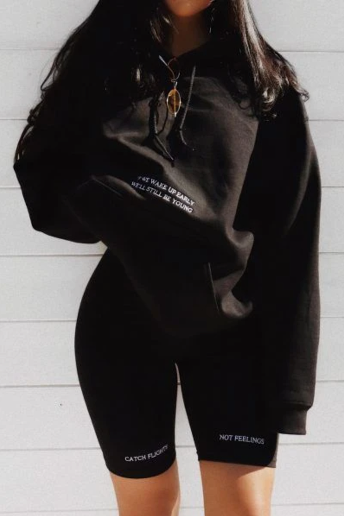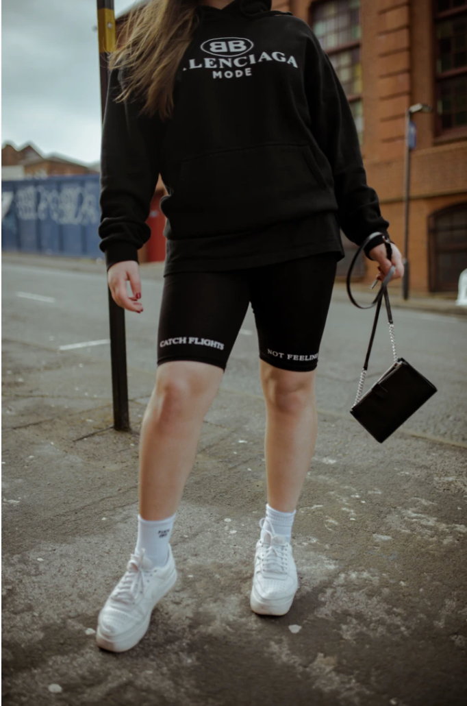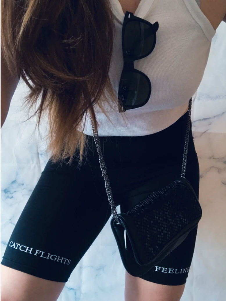 Pantalonii tipul cycling shorts 'Catch Flights Not Feelings' sunt perfecti pentru stilul si atitudinea ta vara aceasta!