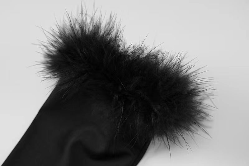 Rochie 'Little Black Dress' - Rochie neagra cu detalii din puf si manusi detasabile