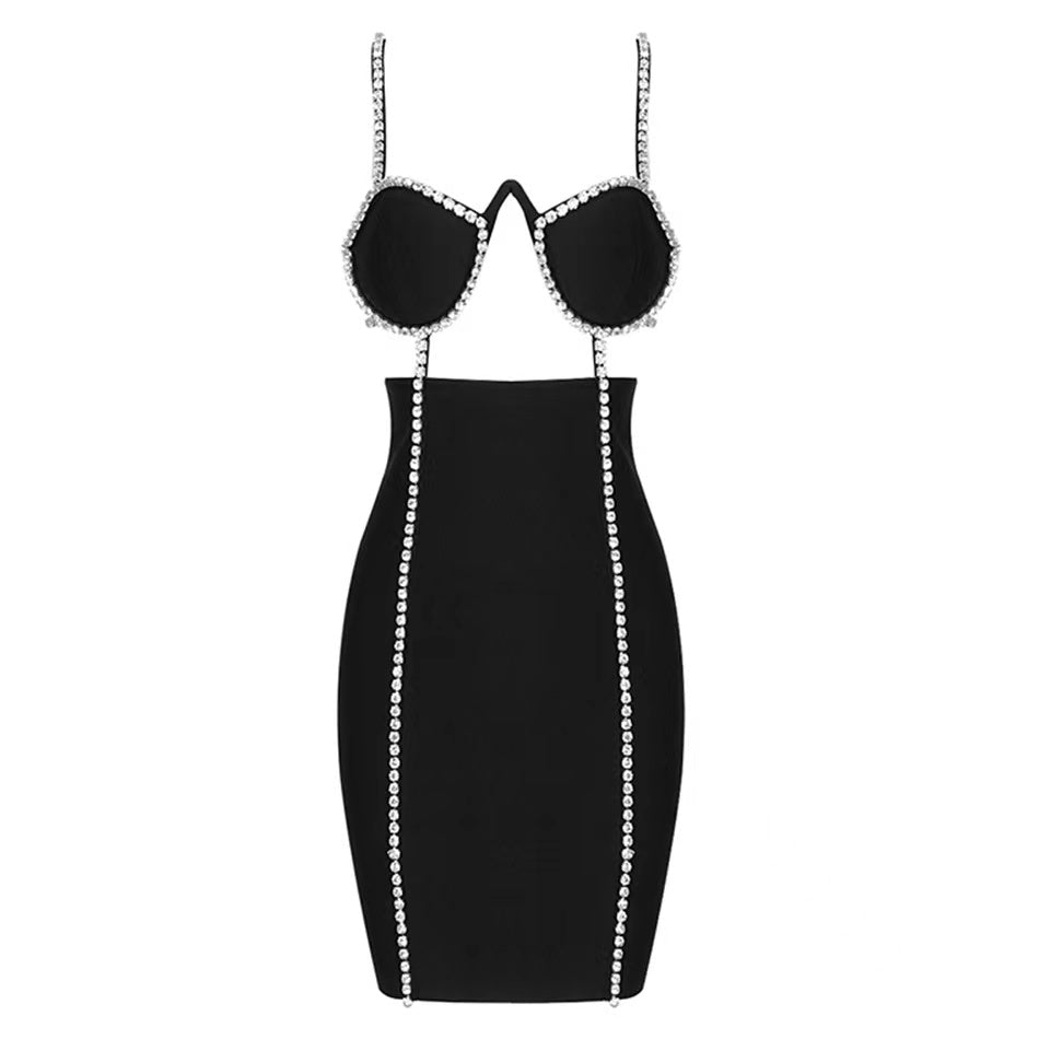 Rochie 'Sparkle Up' - Rochie neagra, cu efect modelator si detalii din pietre