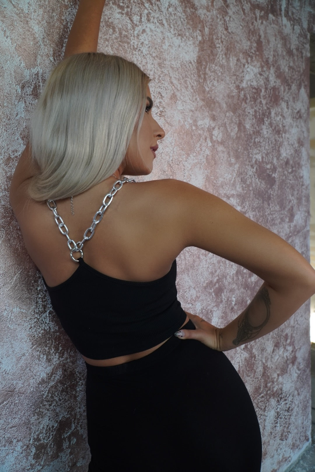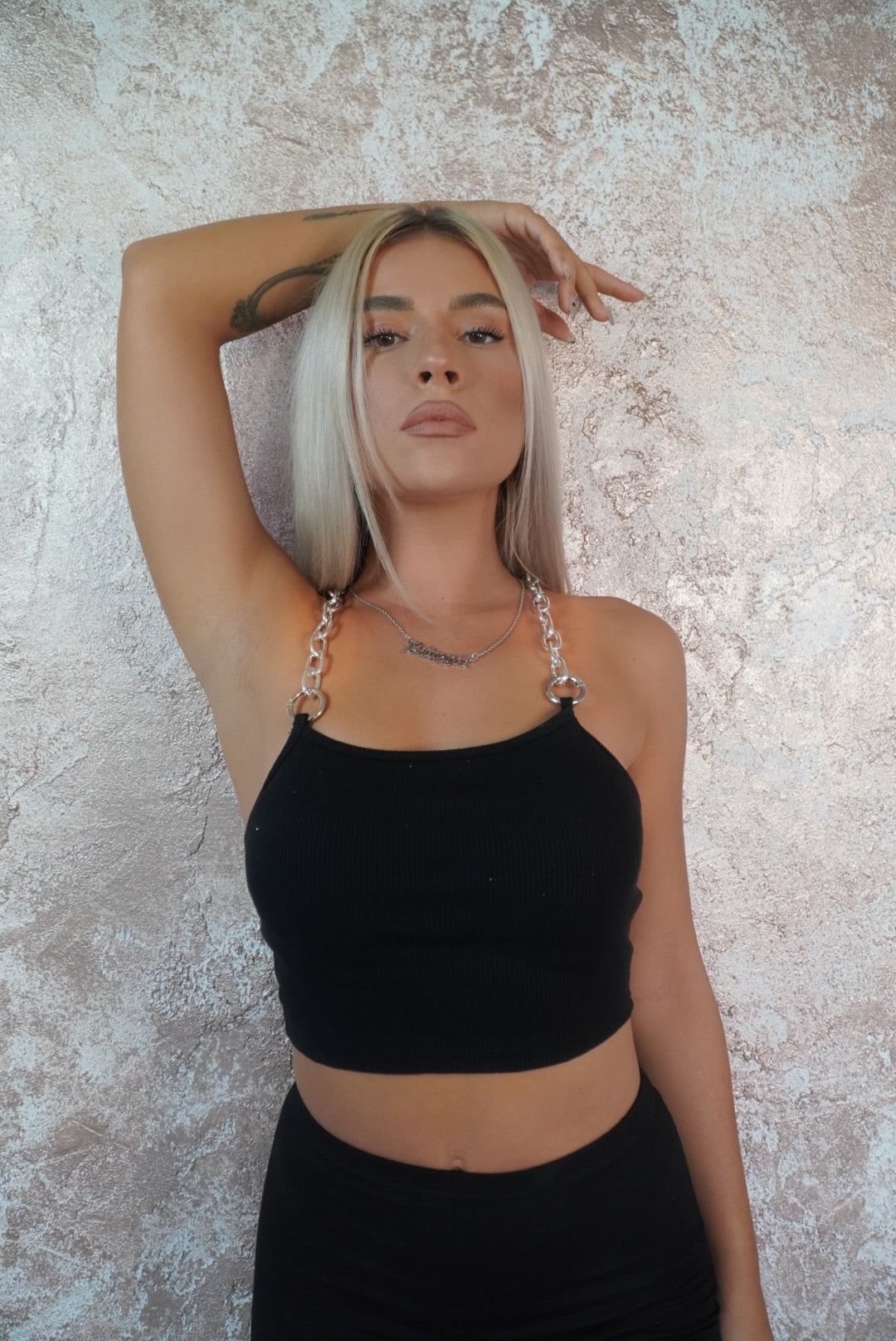 TOP 'ATTITUDE' NEGRU - Top negru cu bretele din lant